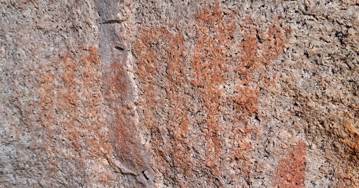 As pinturas rupestres encontradas no Parque Nacional do Itatiaia foram feitas com a técnica da policromia, usando tons vermelhos e alaranjados. Foto: Equipe Museu Nacional/UFRJ-UERJ/Divulgação